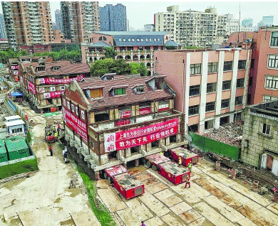 位于静安区苏河湾核心区域的安康苑永庆里5幢历史建筑整体平移工程全面启动,该工程开创了上海历史上建筑群平移总量和平移距离之最。